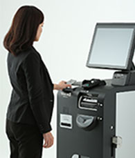 自動チェックイン機でQRコードをかざすだけで